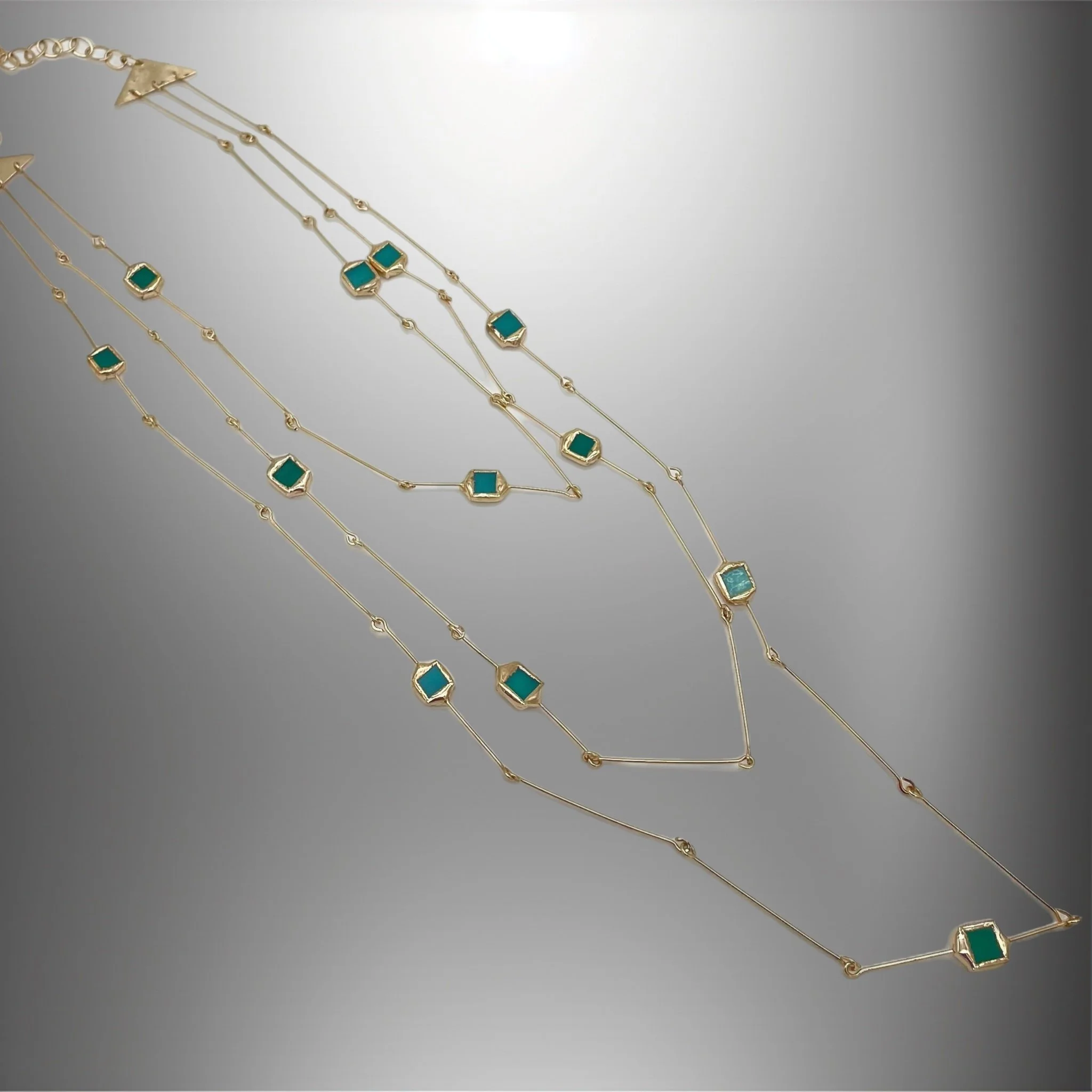 Nei gioielli di Jessica Convalle il vetro diventa luce da indossare: un materiale antico che si trasforma in pietra contemporanea, tra colore, trasparenze e design essenziale.