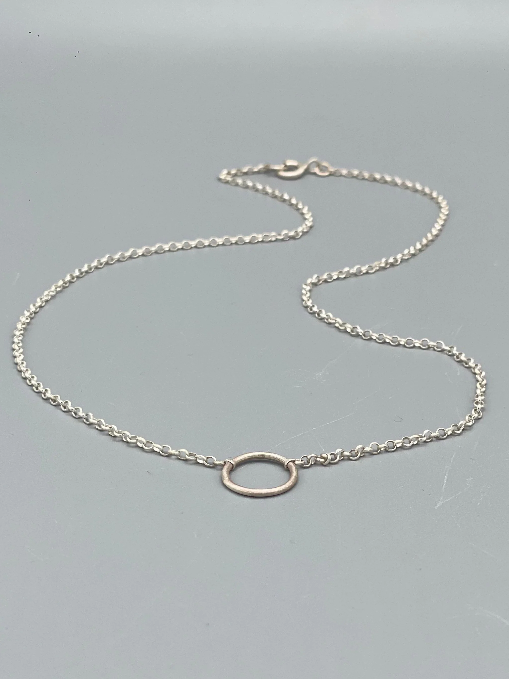 Una catena sottile in argento brunito incontra una piccola croce in oro giallo 18 carati. Un dettaglio essenziale, con un contrasto deciso e sofisticato.