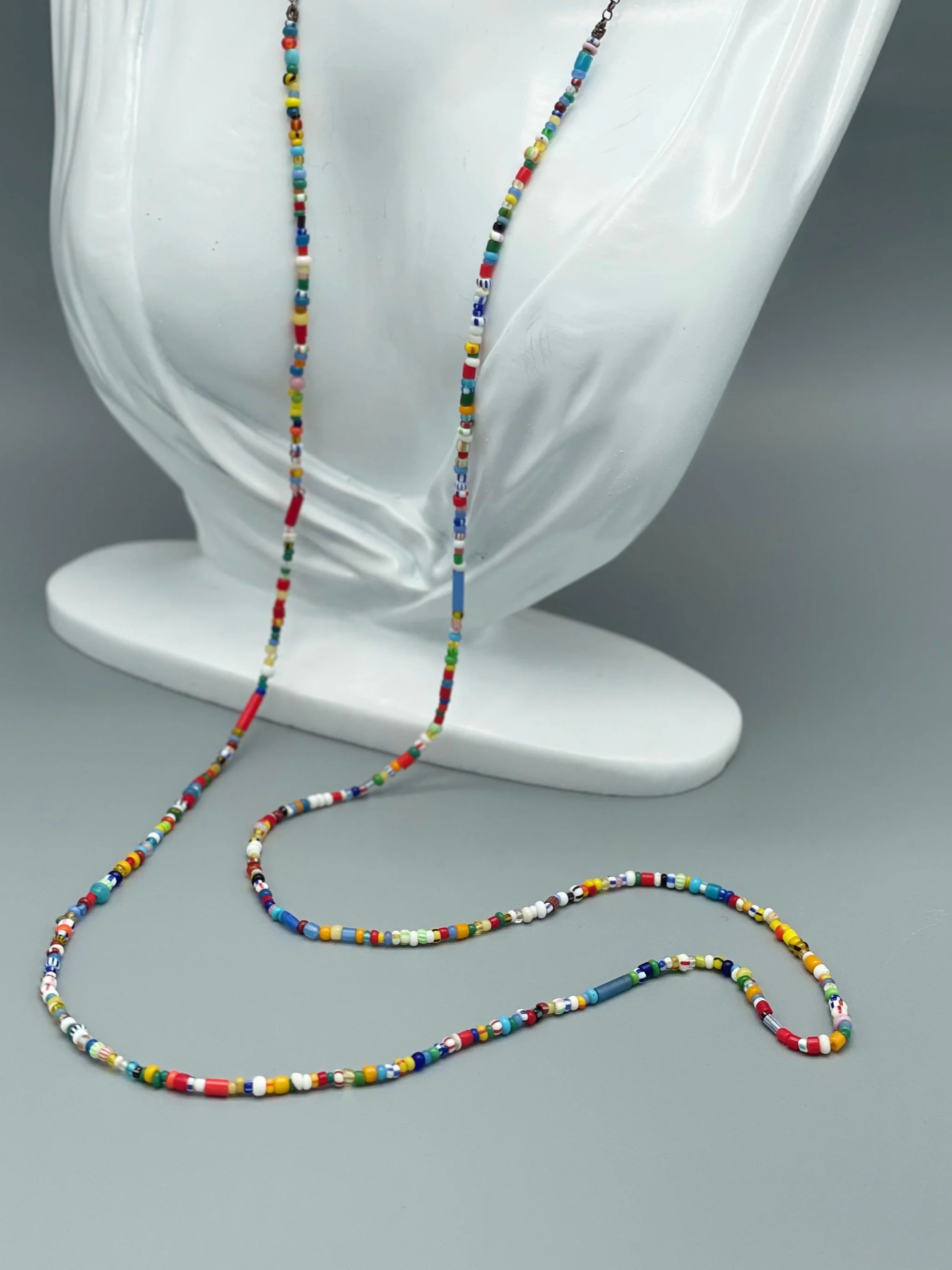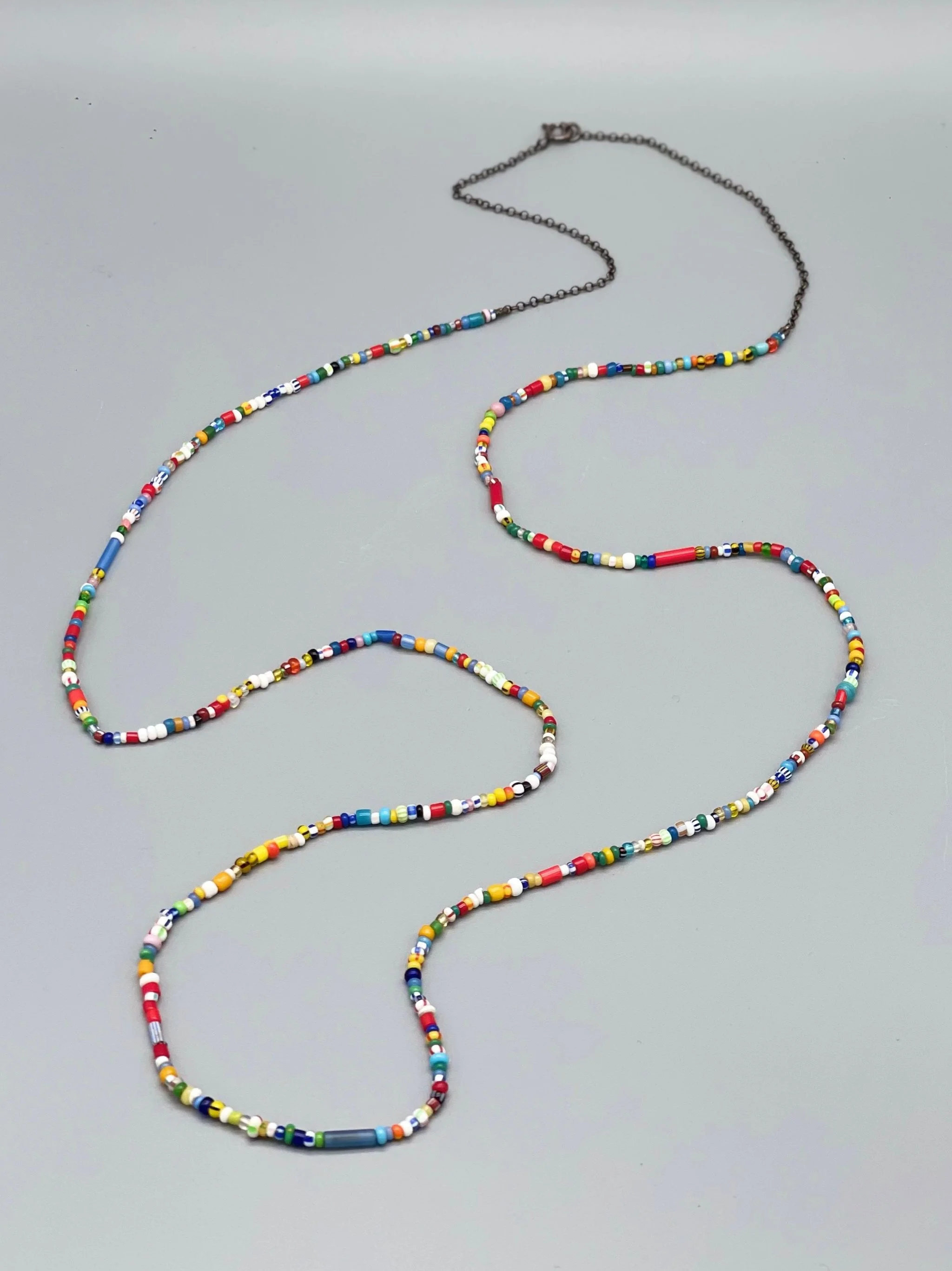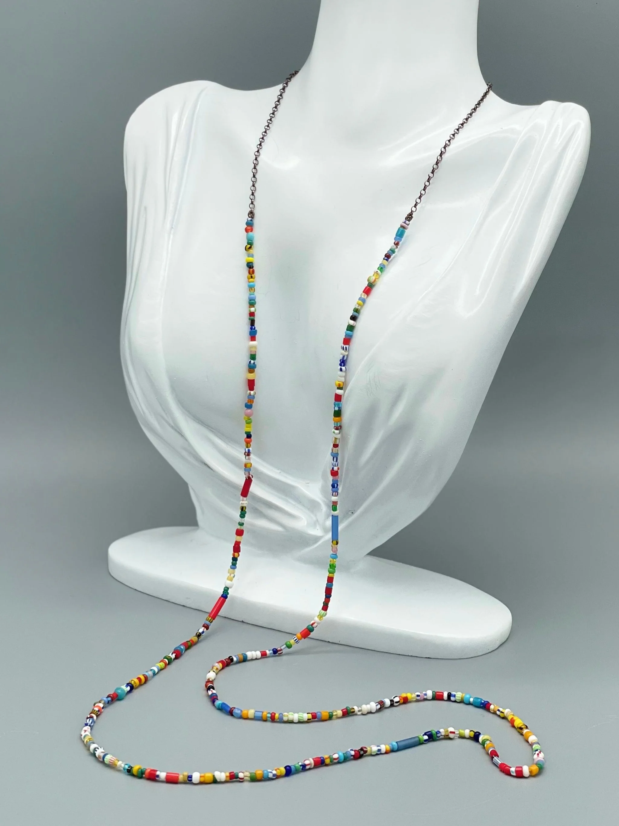 Collana in vetro contemporaneo e argento brunito