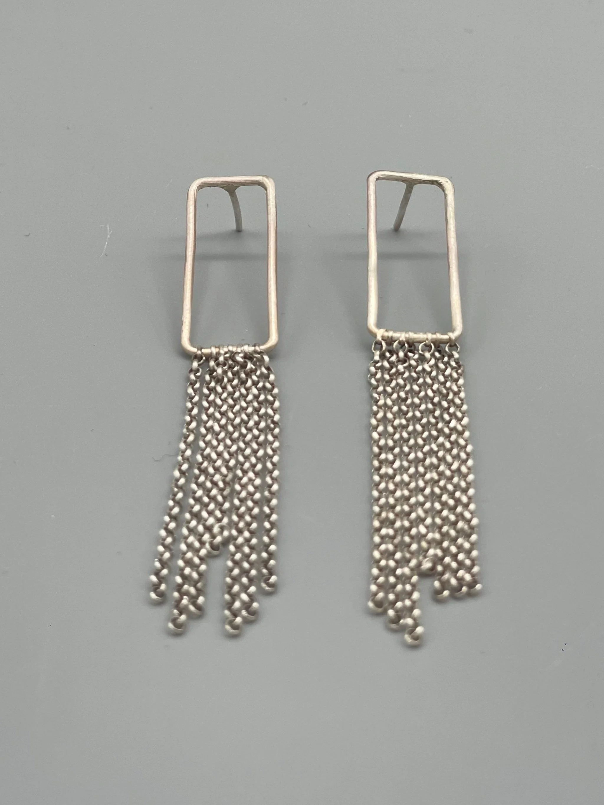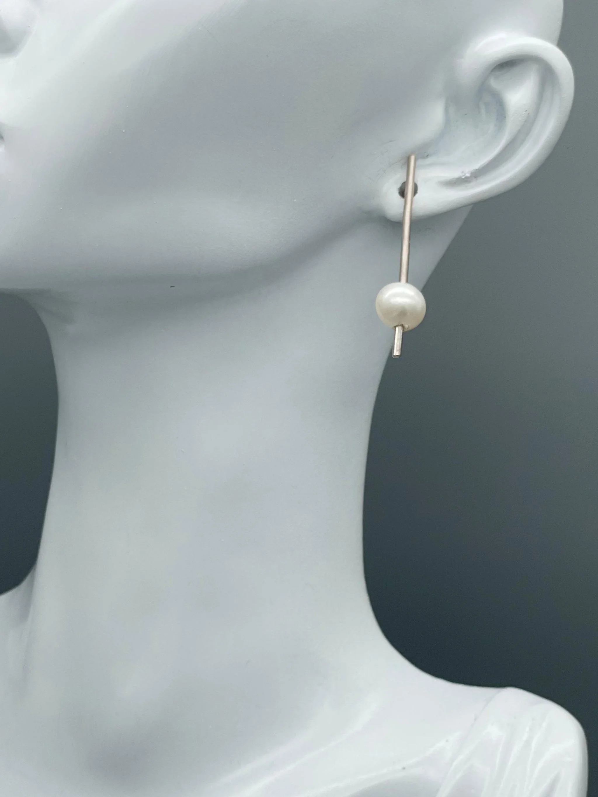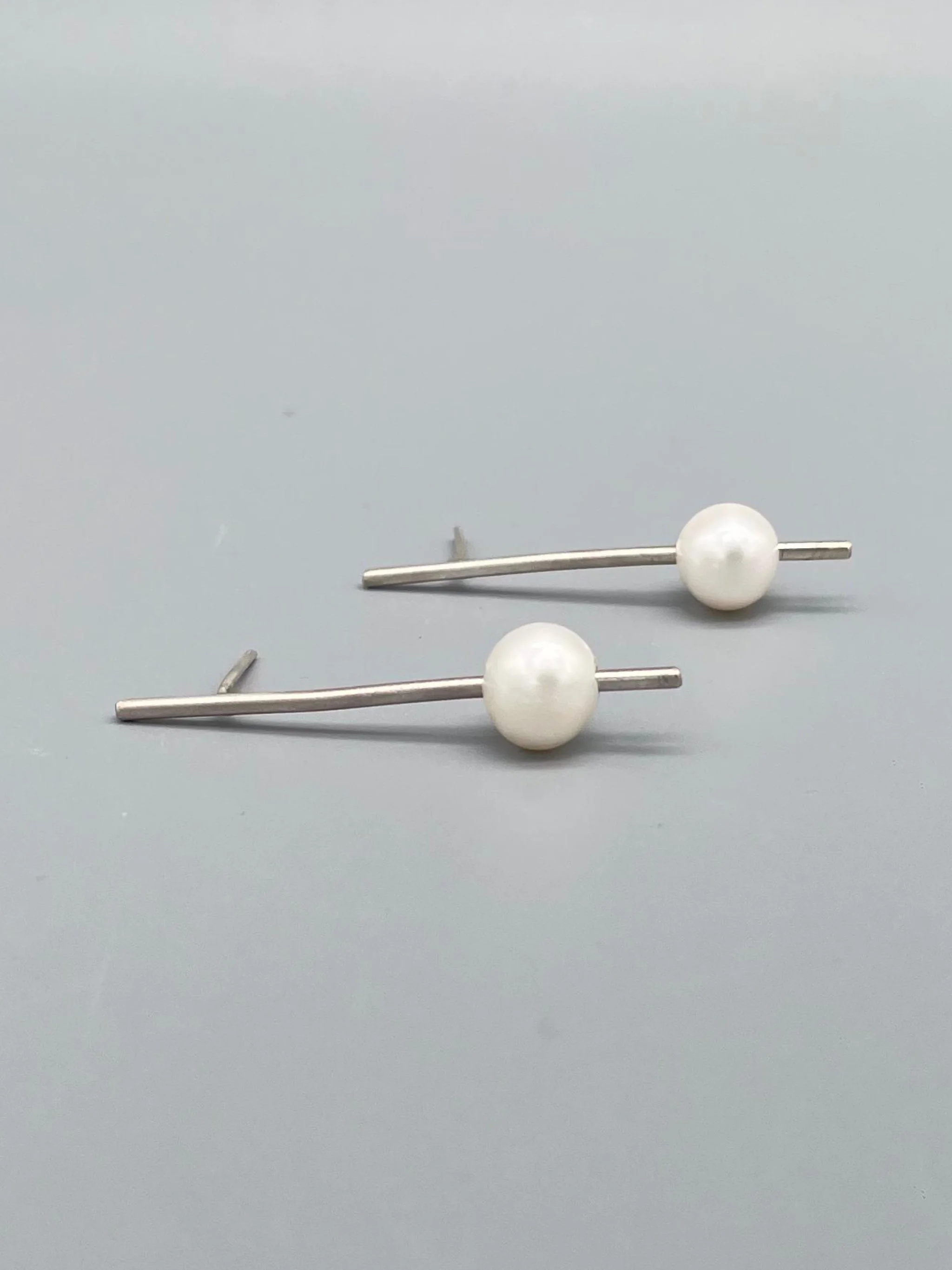 Orecchini essenziali in argento opaco con perle bianche naturali.